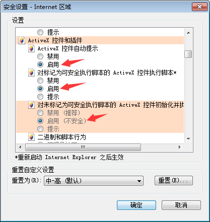 6、找到ActiveX控件和插件,将ActiveX控件和插件中所有内容点击启用。
