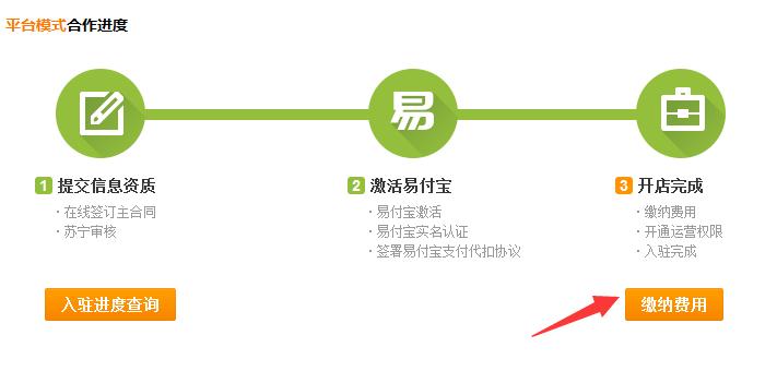 商家付款成功后,苏宁会邮件通知商家,同时会显示支付成功信息,保证金缴纳完毕后,苏宁云台权限立即开通,入驻里路程结束。即可进入苏宁云台管理界面,商家可以装修店铺,发布商品操作了。