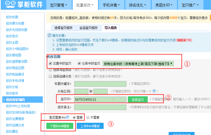 利用【批量修改】快速填充商家编码,提升淘宝商品发布速度