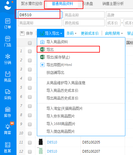 3、登陆聚水潭ERP,跳转到普通商品资料版块,