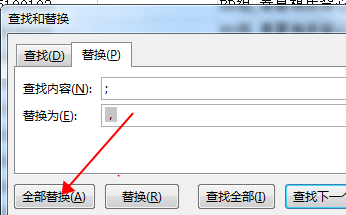 ●利用 查找→替换功能,把 ; 替换成 ,【替换快捷建: ctrl+H】