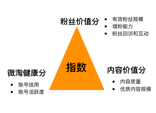 微淘号商家指数主要由内容价值分、粉丝价值分、及账号健康分三个维度组成。微淘号商家指数越高代表商家整体越优质。指数可以指导商家更有方向地进行粉丝运营和内容创作,助力商家在微淘号中更好地成长。指数的高低将会影响商家晋级,作为各项权益的准入门槛之一,并影响流量分发、账号推荐、微淘活动报名等场景。
