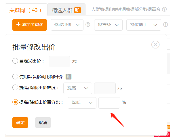 如下公式体现:人群出价=关键词出价+关键词*溢价比例