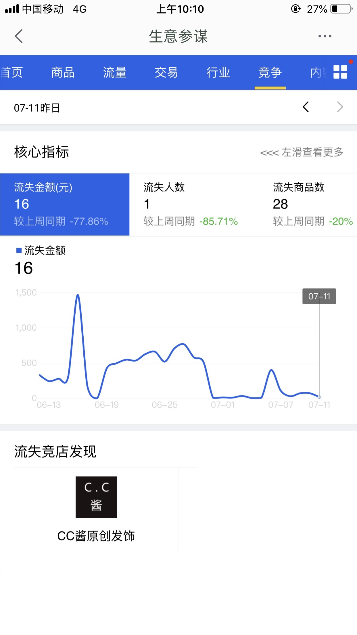 可以这样理解,不过这个数据不能只是看看而已,咱们要分析流失竞店的有什么吸引消费者的地方,总结人家的优点,将好的地方吸收为自己所用,这样才更有利于咱们店铺的发展