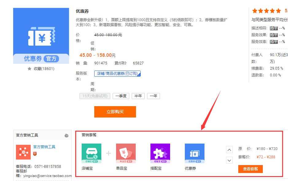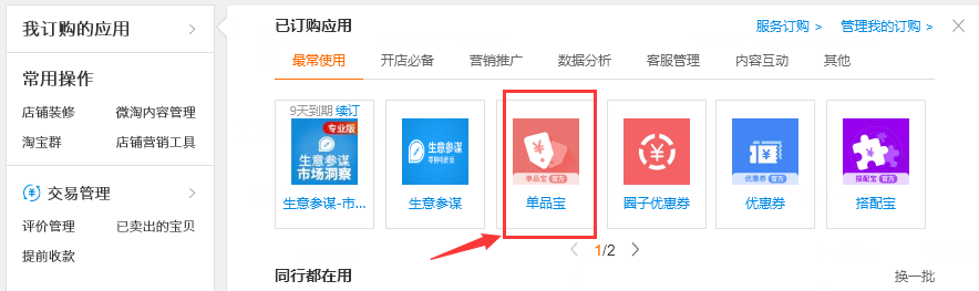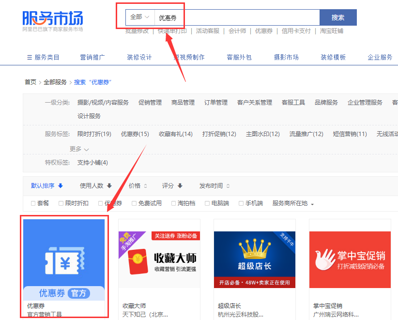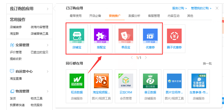 1、设置优惠券或者店铺满减活动,卖家中心 – 我订购的应用 - 服务订购,搜索优惠券及店铺宝等。