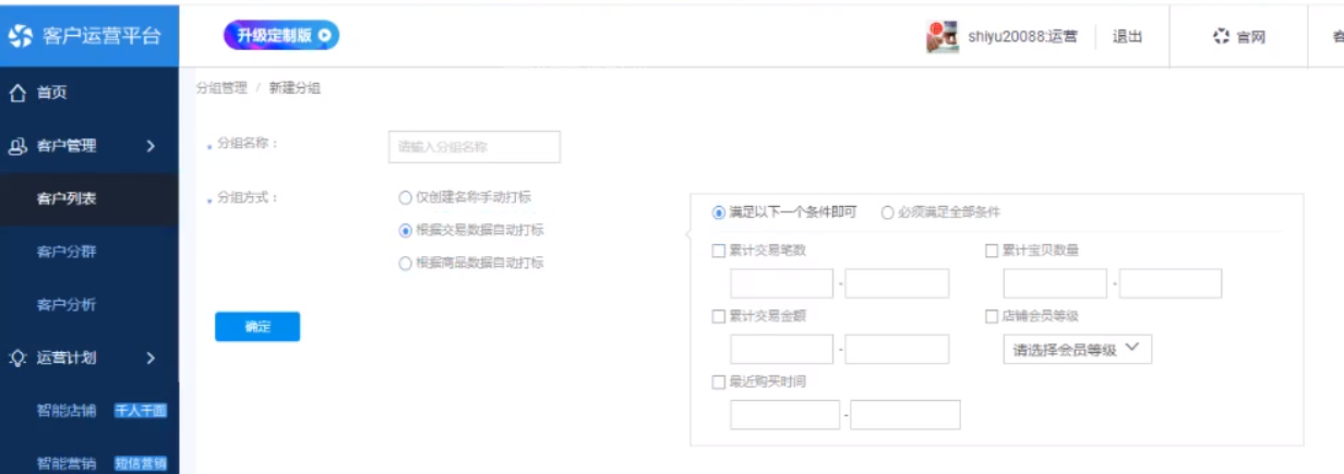在客户列表有一个分组管理,分组管理是我们自定义设置小组,一般来说用第一种手动打标,设置好之后返回分组管理,回到客户列表中,在详情页查找对应的分组信息,在添加分组选择对应的分组,这样可以帮助我们在店铺前期有销量但销量不是很多的时候来给消费者分级,分级之后可以在一周或者两周后来针对性的进行营销。手动打标就需要手动拉人,把客户手动分组,而根据交易数据或者商品数据自动打标就是系统自动给你分组。