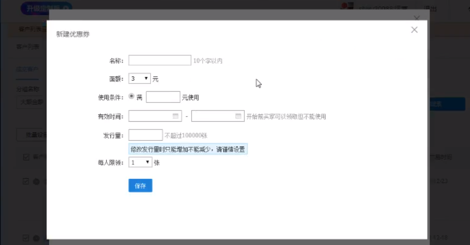 把客户进行分组之后,可以批量选择用户,针对性做营销,比如送优惠券,新建优惠券,发送优惠券之后这些消费者会在淘宝的消息里面收到这个信息,相当于在淘宝这个平台里面进行了一个大规模的宣传。客户运营平台是淘宝的官方工具,它的优点就是拉人比较快,而且能够保留数据的完整性,任何的第三方工具都没有客户运营平台这个工具统计的完整,当然客户运营平台也有它的局限性,它的营销模式不是特别的丰富。总的来说客户列表分为三点,第一,将我们所有的客户(成交或者未成交)自动抓取数据,第二,可以直接分组,针对组去做营销,第三,未成交用户可以抽案例主动营销,次数不用太频繁,前期可以帮助我们出单。