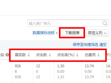 支持批量数据下载:可以在推广单元层级,找到对应单元进行数据报表下载