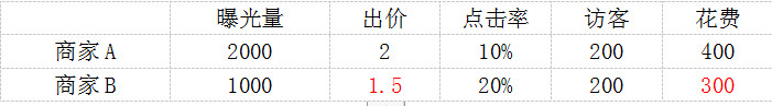 B比A出价低的情况下,我们B的花费也比A的花费更高。