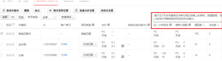 竞争力指数就是我们的质量分,竞争力指数越高那么我们的快车排名越高,相对的我们的点击费用越低。