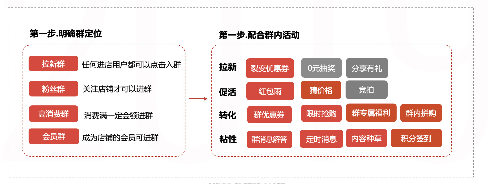 1.高价值用户沉淀:高意向用户分层进群,结合群内互动实现用户沉淀;
