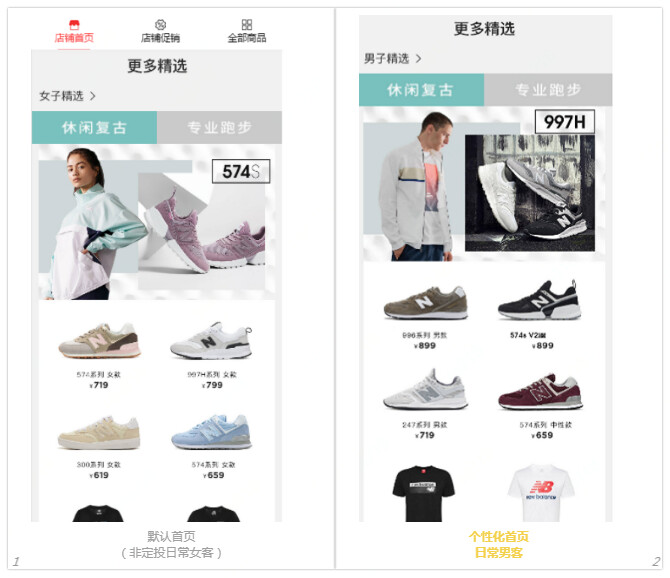 策略:针对男性和女性用户,在店铺内更多精选楼层调整选品,针对指定性别推荐对应的商品。