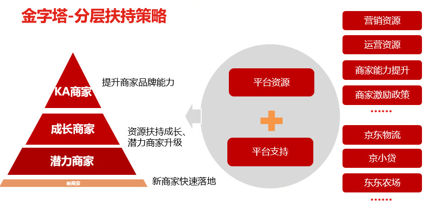 采用金字塔分层计划为商家赋能,将商家分成(ka,成长,潜力,新商家)4类,分别对应不同的资源配置,有效解决资源分配不均,利用效率低等痛点,并运用在培训、广告、用户运营等多方面。