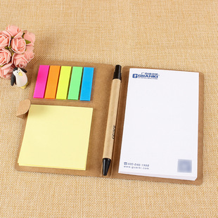 [便签本] 牛皮纸笔记本组合 便签本办公文具 记事本便利贴 带笔日记本定制
