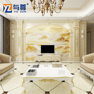 [电视] 电视背景墙瓷砖高温烧微晶石欧式客厅影视墙边框大理石罗马柱石材