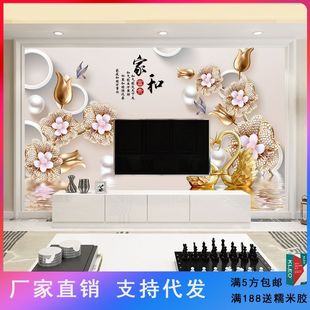 [电视] 厂家直销8d壁画无缝电视背景墙简约客厅珠宝花卧室无纺布壁纸定制