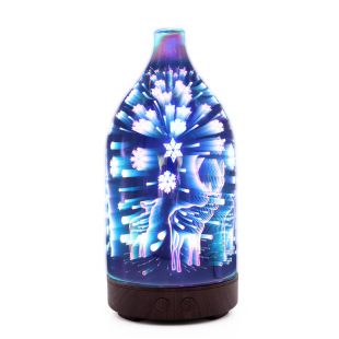 [香薰机] 驯鹿3D玻璃迷你香薰机卧室静音加湿器七彩夜灯木纹爆款工厂货源