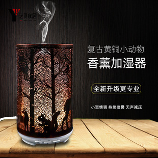 [香薰机] 麋鹿森林铁艺镂空香薰机精油扩香机办公家用七彩夜灯便携式加湿器