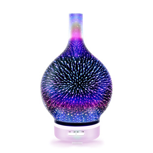 [香薰机] 跨境热销100ml创意夜灯 3D玻璃烟花香薰机七彩香熏星空爱心加湿器