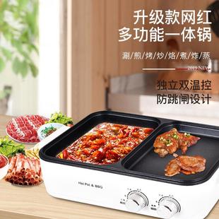 [电火锅] 热销网红款多功能烤涮一体锅独立双温控电火锅新型无涂层电热锅