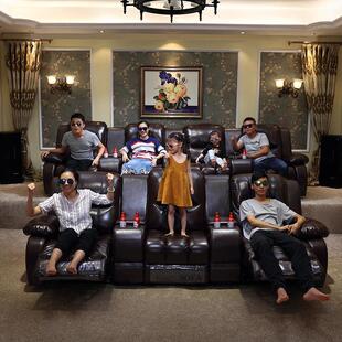[家庭影院] 可定制头等功能舱真皮沙发客厅家庭影院私人影音室电动沙发双人位
