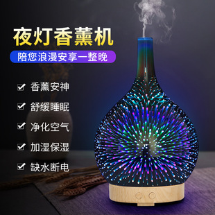 [香薰机] 亚马逊爆款3D玻璃香薰机加湿器家用七彩办公空气冷雾夜灯加湿器