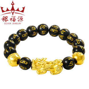 [碧玉] 直销越南镀金貔貅六字真言串珠手链转运珠黑曜石手串地摊货源热卖
