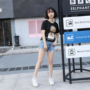 [t恤] 2019夏季新款女装韩版连衣裙印花女中长款短袖t恤女学生上衣打底