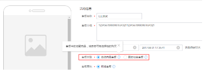 亲,固定组合套餐是指商品打包成套餐销售,消费者打包购买。自选商品套餐是指套餐中的附属商品,消费者可以通过复选框的方式,有选择的购买。设置页面会有对应文案提醒哦。
