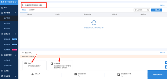 (1)上新老客提醒:系统会自动根据您店铺的上新商品(近7天首次上架宝贝),来计算对其感兴趣客户。您可以选择对该客户群来进行营销通知,快速提升新品销量和好评。