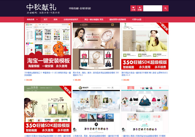 特别说明,这份全屏店招来源淘宝一键安装模板350模板的一款中秋节专用模板,喜欢该模板的朋友,可以前往350模板直销店购买,模板30元一套,90元可以购买所有的模板。付费版的使用起来更方便,没上面那么麻烦,不需要修改代码哦。