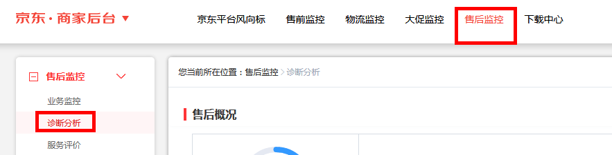 查看路径2:商家后台 – 风向标- 售后监控-“诊断分析”