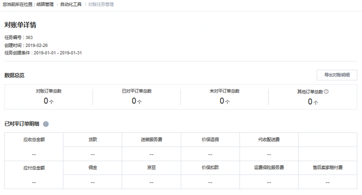 (5) 对账单详情包括“数据总览”和“已对平订单明细”两部分。