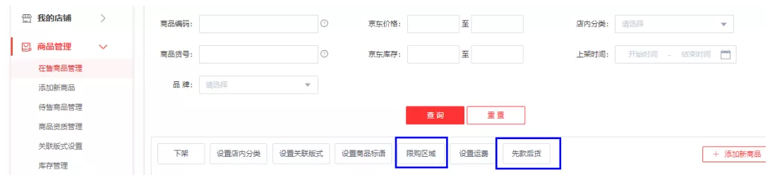商家可以在shop端设置先货后款来控制商品售卖的地域。(具体路径如下:shop端——商品管理——在售商品管理——限购区域)这样商家朋友们既保护了消费体验,又遵守了平台规则,岂不一举两得?