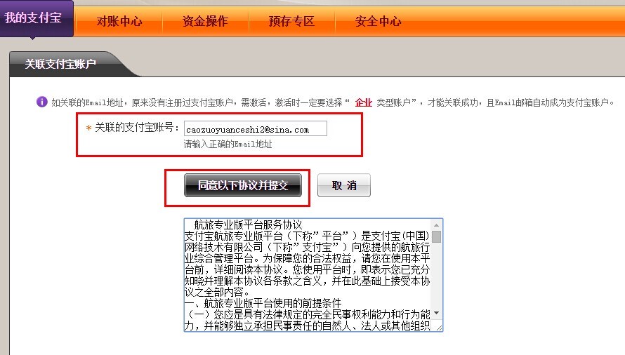 2、使用从未注册过支付宝账户的邮箱,通过航旅版关联子账户可一并完成注册、认证、关联