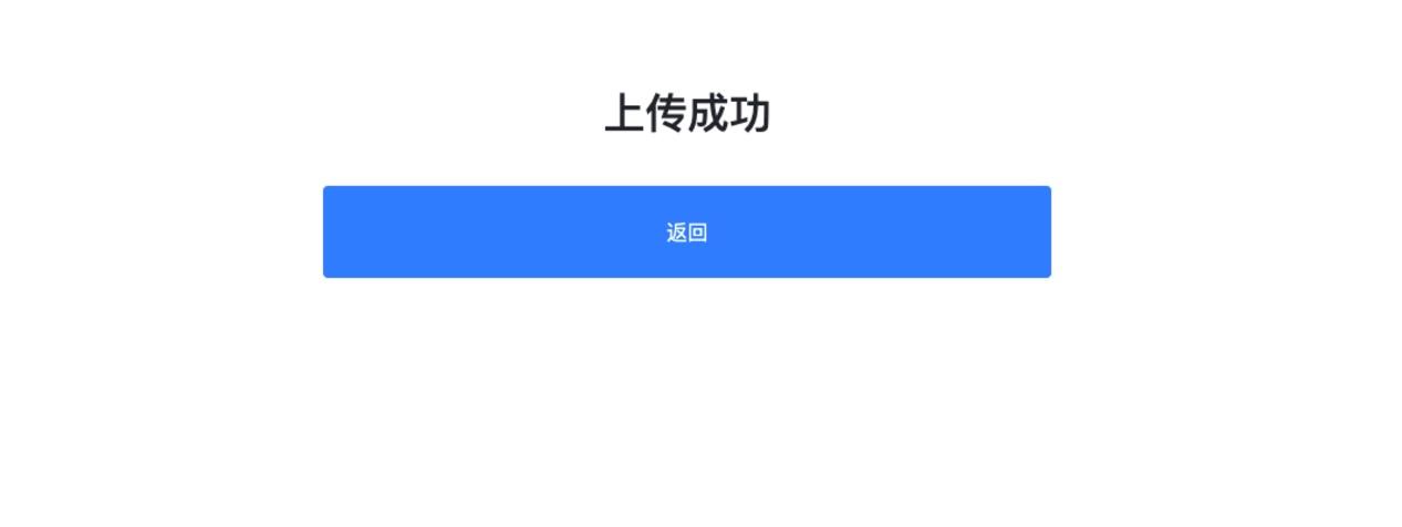 2、批量上传成功之后会跳转至上传成功提醒,点击【返回】按钮返回首页,系统默认是每小时循环更新一次。如果要查看自己刚上传的数据,就需要稍等一会,数据循环处理需要一点时间~