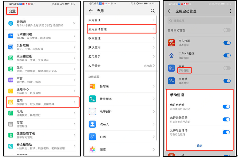 ①将京麦应用设置为“手动管理“;操作路径:设置 – 应用 – 京麦