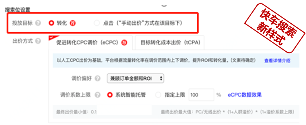 2.促进转化CPC调价(eCPC)一款以优化ROI,提升订单金额为目标的智能调价工具。