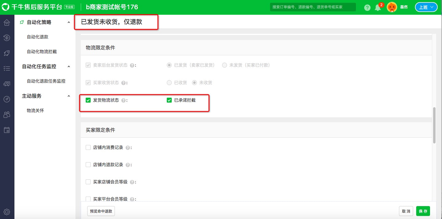 1.进入千牛售后服务平台-策略中心-自动化策略设置自动化物流拦截点击添加策略