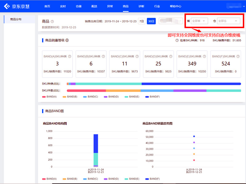 来了!来了!京慧商品板块全新升级,针对商家现有SKU。通过销量比例为SKU分层,给商品做打标,监控不同BAND等级的SKU库存以及销量情况,支撑商家日常的补货调拨场景;商品精细化管理,同时和京慧的诊断页面相结合,最大程度减少断货,滞销,提升用户体验。
