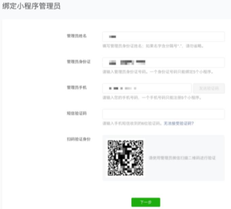 步骤6:绑定小程序管理员;绑定管理员,如果有在步骤4)有勾选复用运营者信息,最终以绑定管理员信息为准