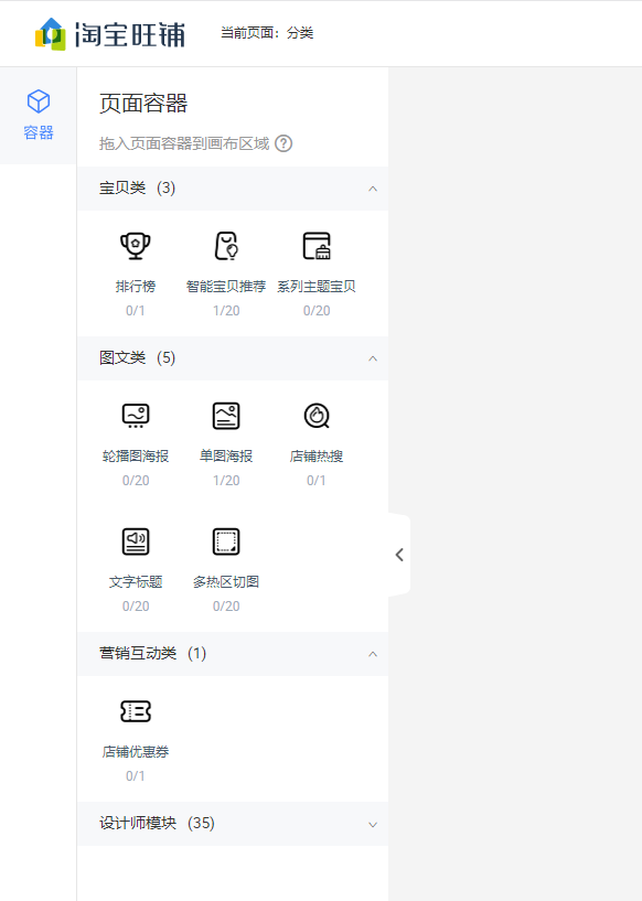方法一1、进入手淘装修页面后,拖入您需要的模块