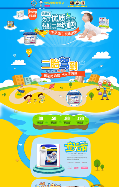 手绘卡通母婴用品益智玩具奶粉早教全屏模板无需作图