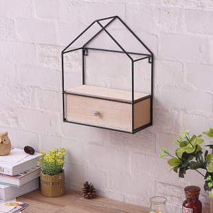 [置物架] 创意款diy三角屋抽屉式收纳柜 铁艺实木壁挂置物架储物柜产地货源