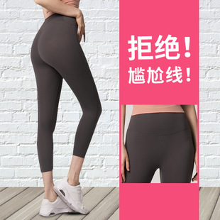 [七分裤] 2019新款欧美无痕七分运动紧身裤 纯色裸感高腰蜜桃提臀瑜伽裤女