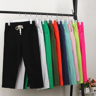 [七分裤] 春夏女装新款百搭松紧腰七分休闲棉麻裤女亚麻运动打底裤地摊货源