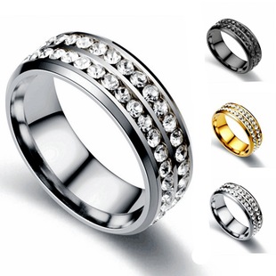 [情侣戒指] 跨境爆款货源钛钢双排钻戒指创意新款欧美时尚不锈钢镶钻情侣戒指
