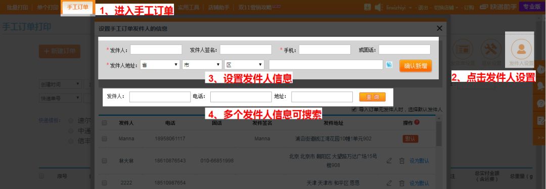 今天给大家介绍下手工订单的详细使用, 线下订单都可以打印哦~ 进入快递助手-手工订单-发件人设置, 设置好发件人的信息, 接下去就是要设置快递单 现在我们可以进行打印了, 手工订单就是自由打印, 想打什么就打什么, 特别是微商的订单, 可以把全部地址复制到软件, 软件自动给您分析好省市区, 省下不少时间。 小编为您演示一下其他地址 复制到软件的结果 这个是...