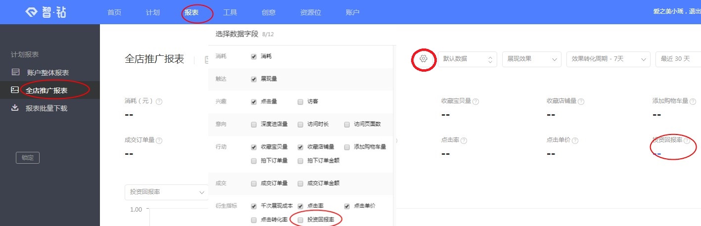 钻展作为展示广告,展现效果更全面的呈现了广告投放效果,因此目前报表默认开放展现效果。可以通过报表-全店推广报表进行查看。