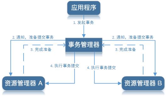 如果所有资源管理器均完成准备(如图 1),则事务管理器会通知所有资源管理器执行事务提交;